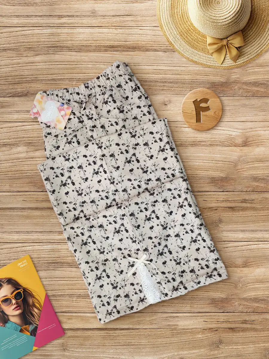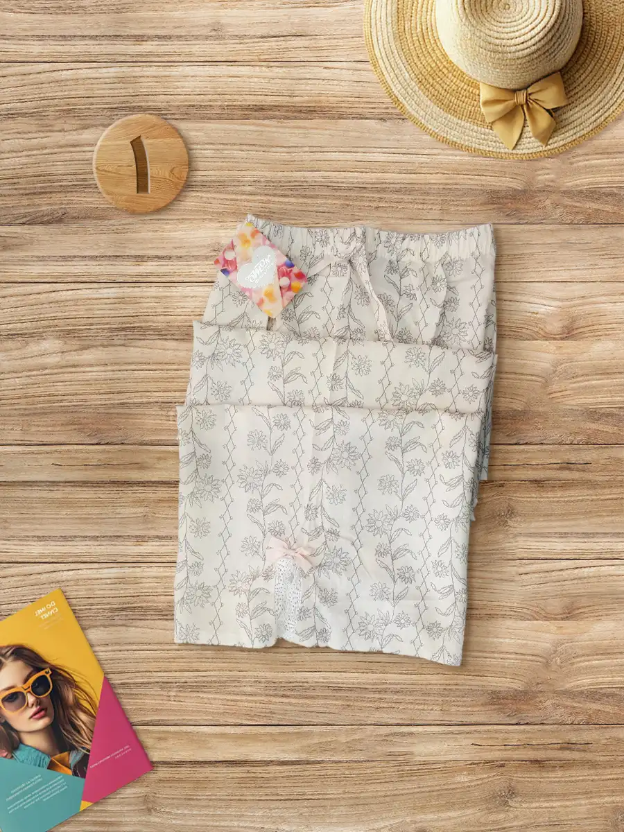 این شلوار نخی، یک گزینهی عالی برای پوشش راحت و خنک در خانه است و همزمان با سبک ساده و فانتزیاش، حس طراوت و نشاط به استایل خانگی شما میدهد.